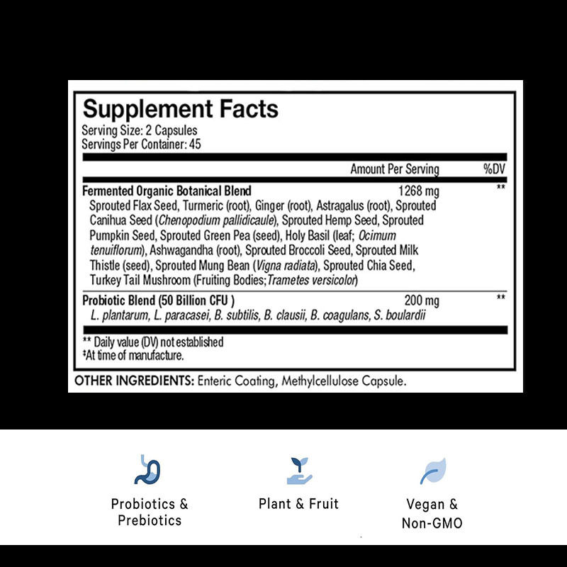 | Thành phần chính | Trộn thực vật hữu cơ lên men, trộn probiotic | |