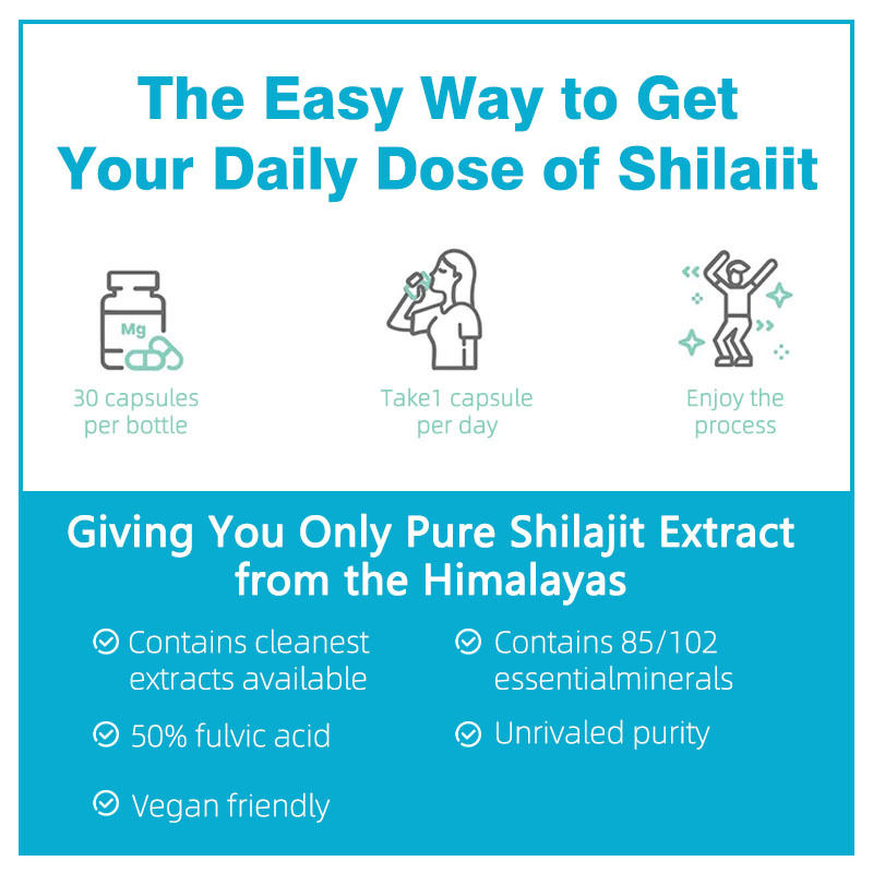 OEM/ODM One-Per-Day Shilajit Capsules Helps Improve Skin Permeability with Pure Shilajit Extract
