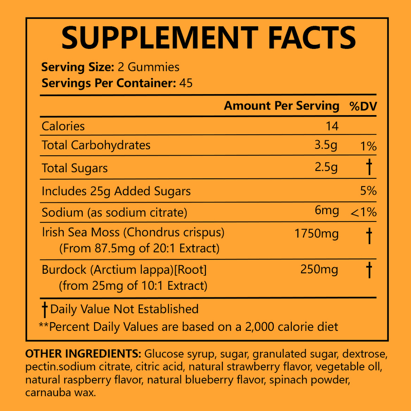 Kẹo dẻo Tảo Biển 3000mg với Burdock Tăng Cường Miễn Dịch Detox OEM/ODM Tùy Chỉnh