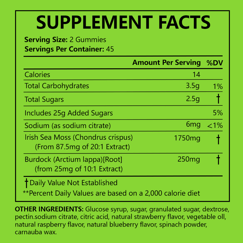Sodium, Irish Sea Moss, Burdock