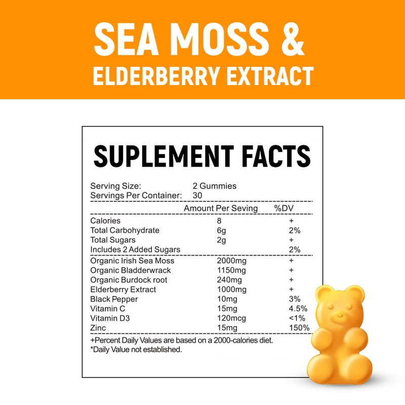 Tảo biển Irish hữu cơ, Vitamin C, Vitamin D3, Kẽm, Tảo bẹ hữu cơ, Rễ ngưu bàng hữu cơ, Chiết xuất cơm cháy, Tiêu đen