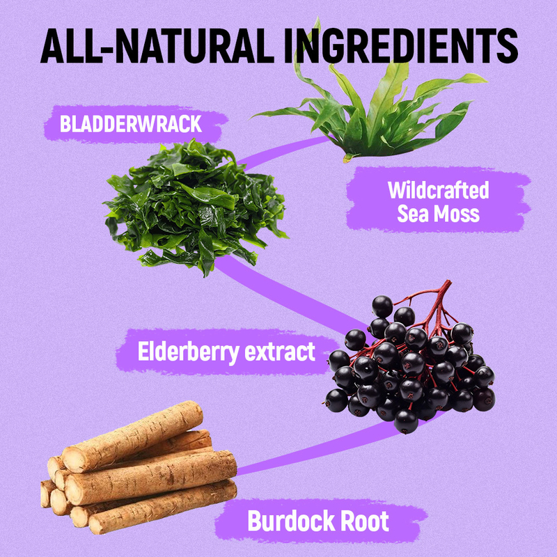 Tảo biển, Bladderwrack, Rễ Burdock, Chiết xuất Elderberry, Kẽm, Vitamin C