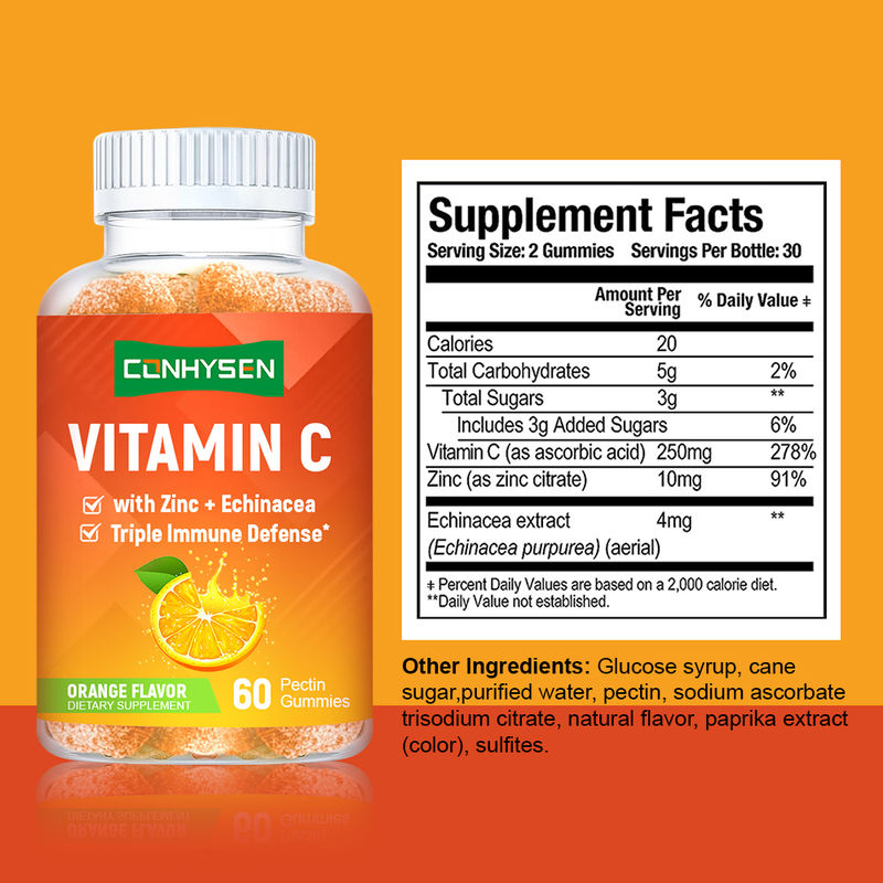 Kẹo dẻo Vitamin C Pectin với Kẽm OEM/ODM Tùy chỉnh Cải thiện Mức năng lượng