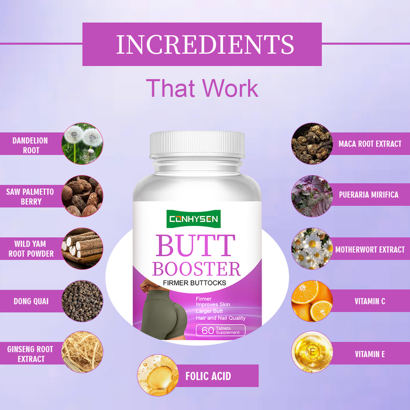 Thuốc Butt Booster Tablet củaCông ty Công nghệ Dược phẩm Guangdong Kangsheng, Ltd.chứa nhiều estrogen thực vật và các thành phần collagen. Nó có thể kích thích sự phát triển và phân phối các tế bào mỡ trong mông,giúp tăng tự nhiên và an toàn khối lượng môngNếu bạn tiếp tục dùng nó, mông của bạn sẽ trở nên béo phì và tròn hơn, với các đường cong hấp dẫn hơn.