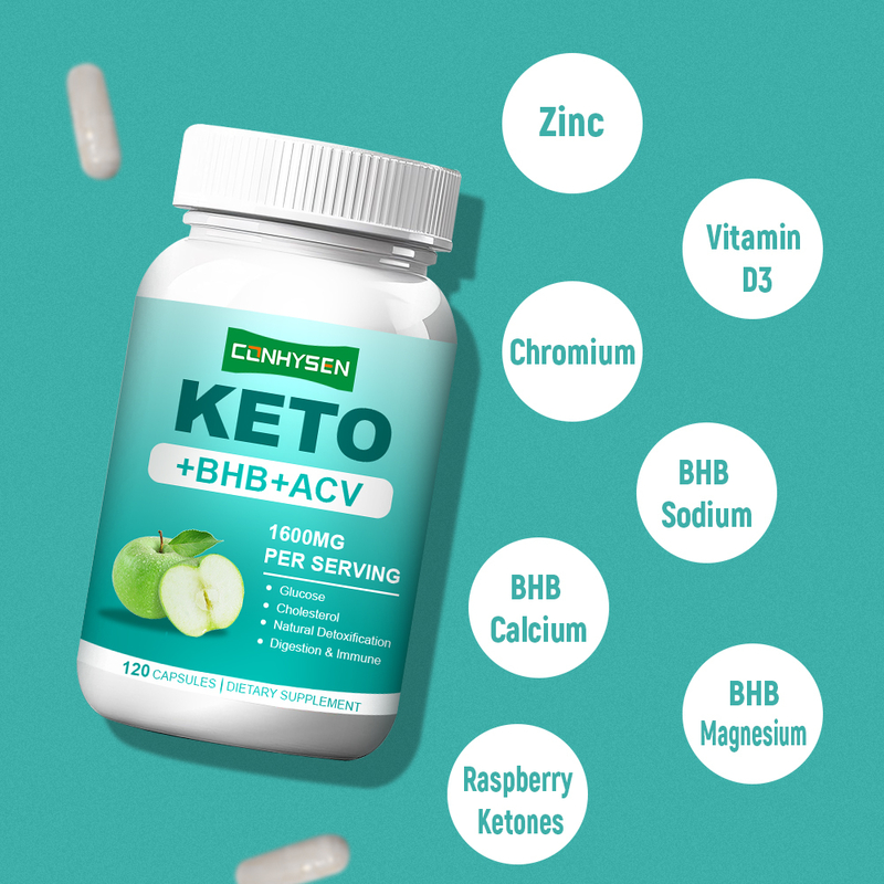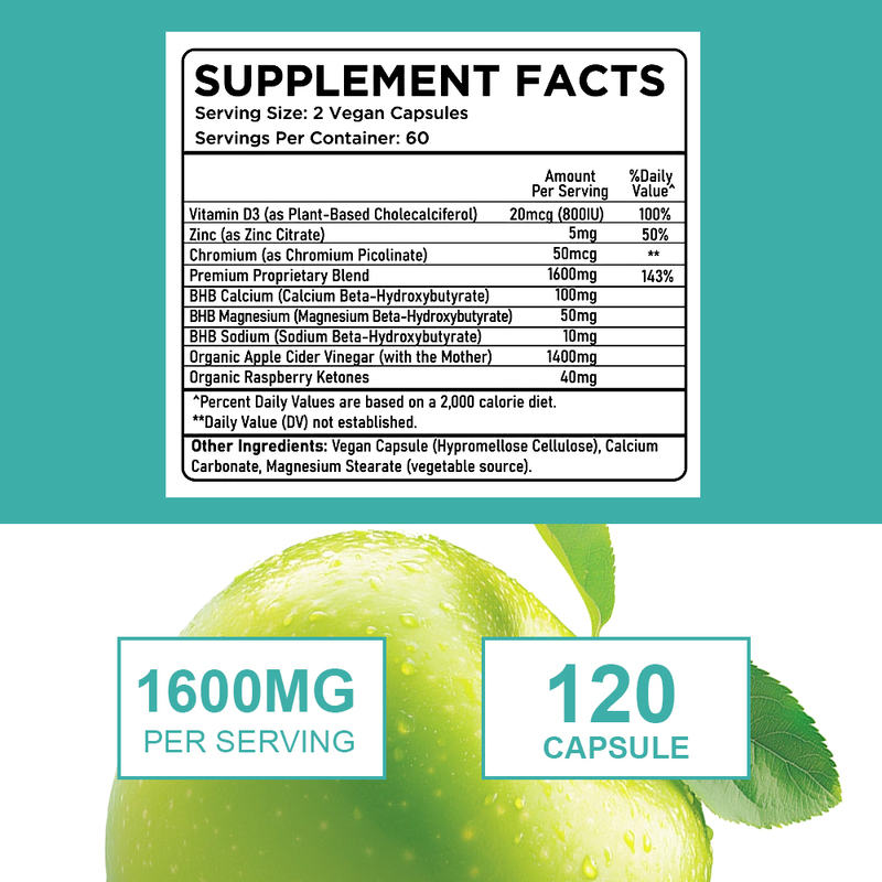 Giấm táo hữu cơ, vitamin D3, kẽm, crôm, hỗn hợp độc quyền cao cấp, BHB canxi, BHB magiê, BHB natri, ketone dâu tây hữu cơ