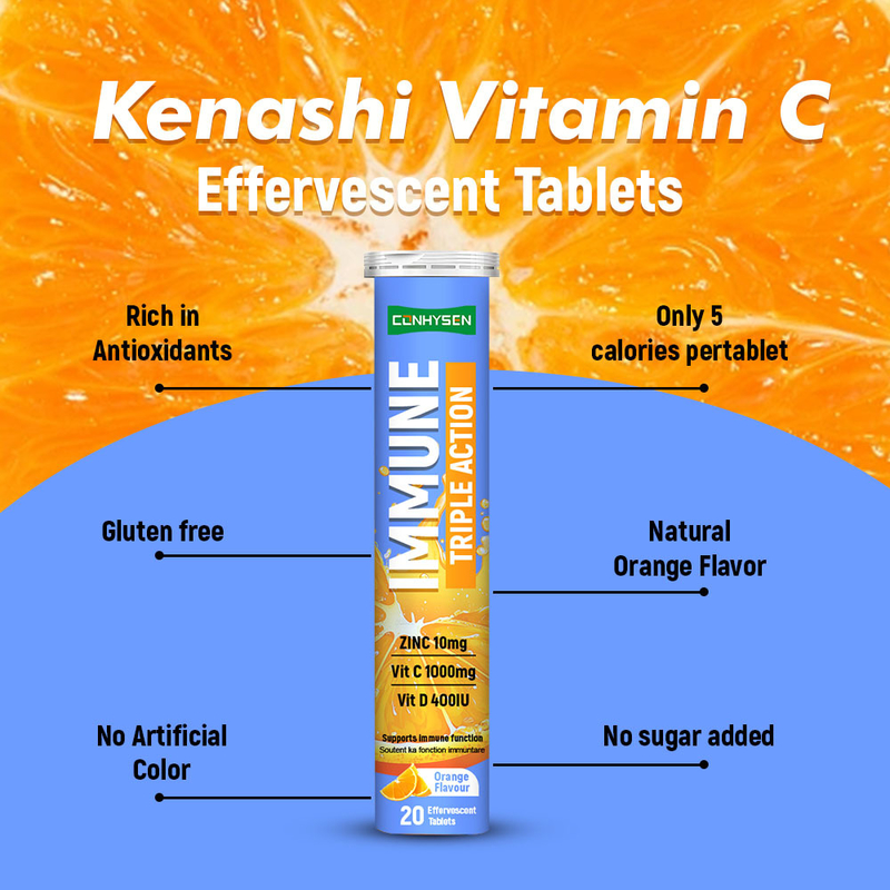Viên sủi tăng cường miễn dịch do Công ty TNHH Công nghệ Dược phẩm Quảng Đông Kangsheng sản xuất rất giàu vitamin C, kẽm và các loại tinh chất thảo dược tự nhiên khác nhau. Chúng có thể tăng cường hiệu quả hệ thống miễn dịch của con người. Các thành phần hoạt tính này hoạt động cùng nhau, kích thích sản xuất bạch cầu và cải thiện khả năng chống lại virus của cơ thể. Chúng đặc biệt phù hợp với những người đang trải qua các giai đoạn chuyển mùa hoặc có khả năng miễn dịch kém.