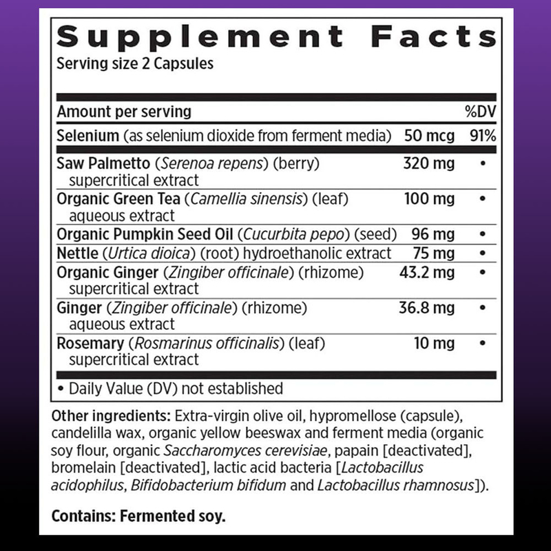 Selenium, Saw Palmetto, Trà xanh hữu cơ, Dầu hạt dưa chuột hữu cơ, Sâu, Gừng hữu cơ, Gừng, Rosemary