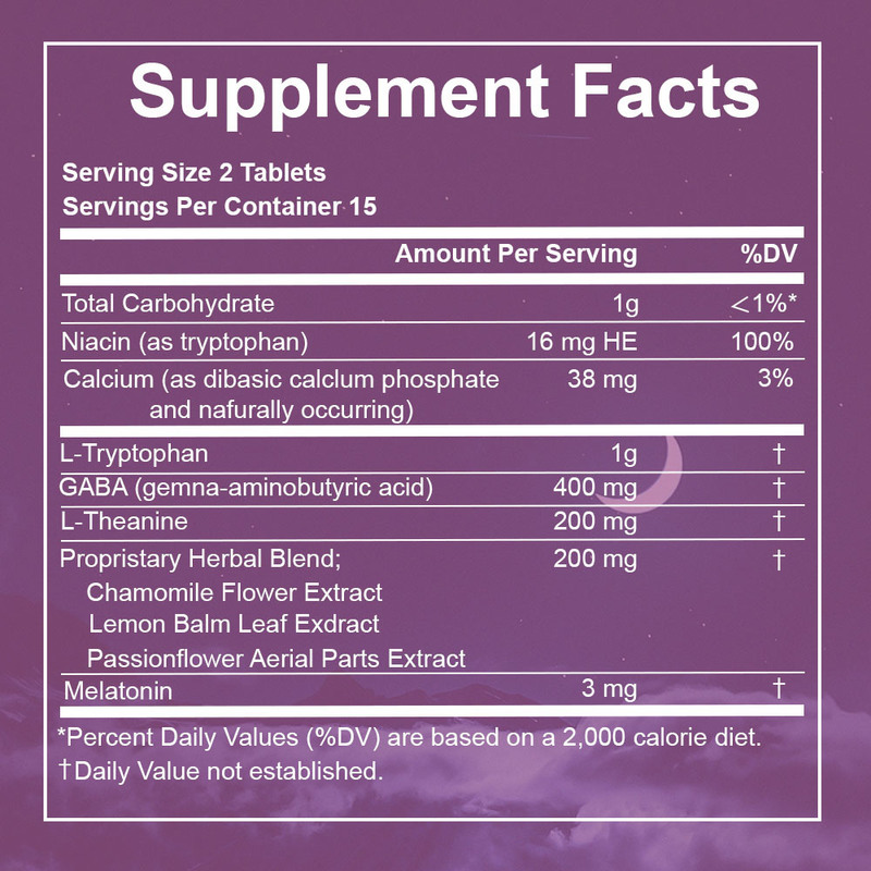 Melatonin, L-Tryptophan, GABA, L-Theanine Lemon Balm Leaf, Exdract Passionflower Aerial Parts Extract