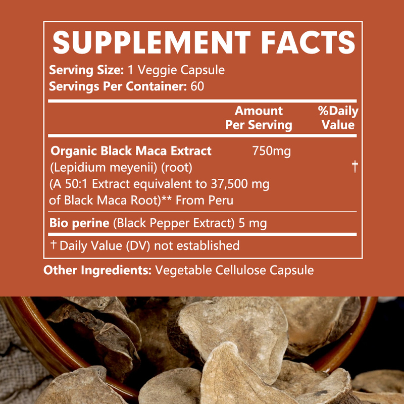 Nhà sản xuất Tùy chỉnh Black Maca Energy Stamina Performance Libido Support